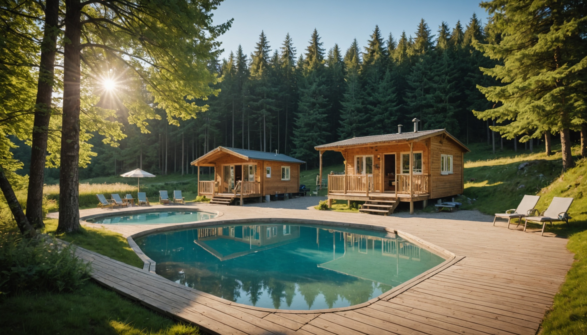 Les chalets en bois incarnent l’esprit authentique des Vosges avec leur architecture traditionnelle et leurs matériaux nobles. Ces hébergement Vosges montagne séduisent par leur cachet rustique et leur intégration parfaite dans le paysage forestier. Plus spacieux que les mobil-homes, ils accueillent confortablement les groupes d’amis ou les familles nombreuses. Leur isolation renforcée garantit un confort optimal quelle que soit la saison. Dans notre camping piscine Vosges guide, les chalets disposent d’équipements modernes tout en conservant leur charme d’antan. Poêle à bois, poutres apparentes et terrasse en bois créent une atmosphère chaleureuse propice à la détente. Ces hébergements permettent de vivre une expérience immersive dans la nature vosgienne sans renoncer au confort contemporain.